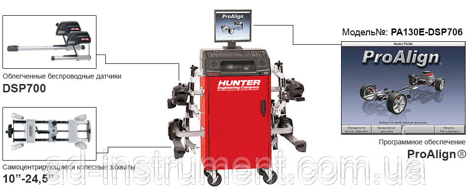 Стенд "розвала-сходження" Hunter PA130 з інфрачервоною вимірювальною системою DSP706 є чудовим інструментом для авто сервісів середнього рівня. Комбінація повнофункціональних датчиків DSP706 і економної комп'ютерної стійки Hunter PA130 дає змогу досягти чудових результатів за мінімуму витрат.